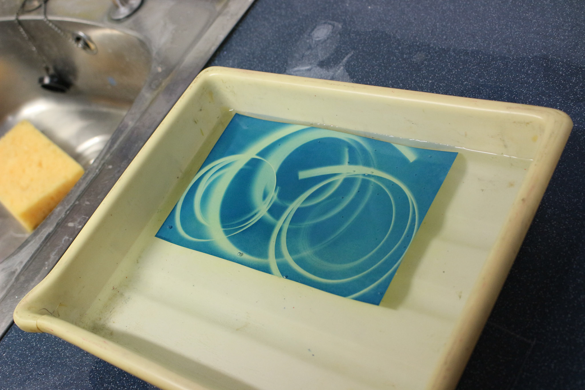 Experiment inspired by rayographs and cyanotypes. Understanding how chemicals, darkness and UV light are key elements to alterations. the photoshop tool before photoshop.