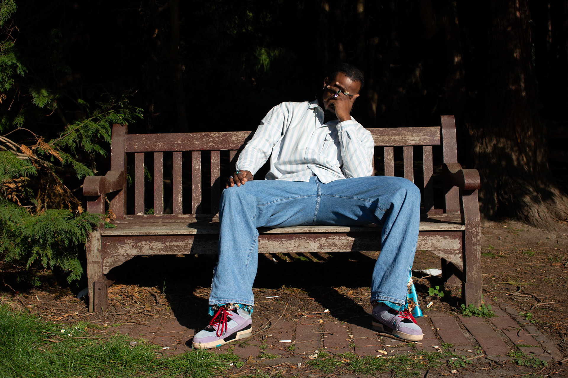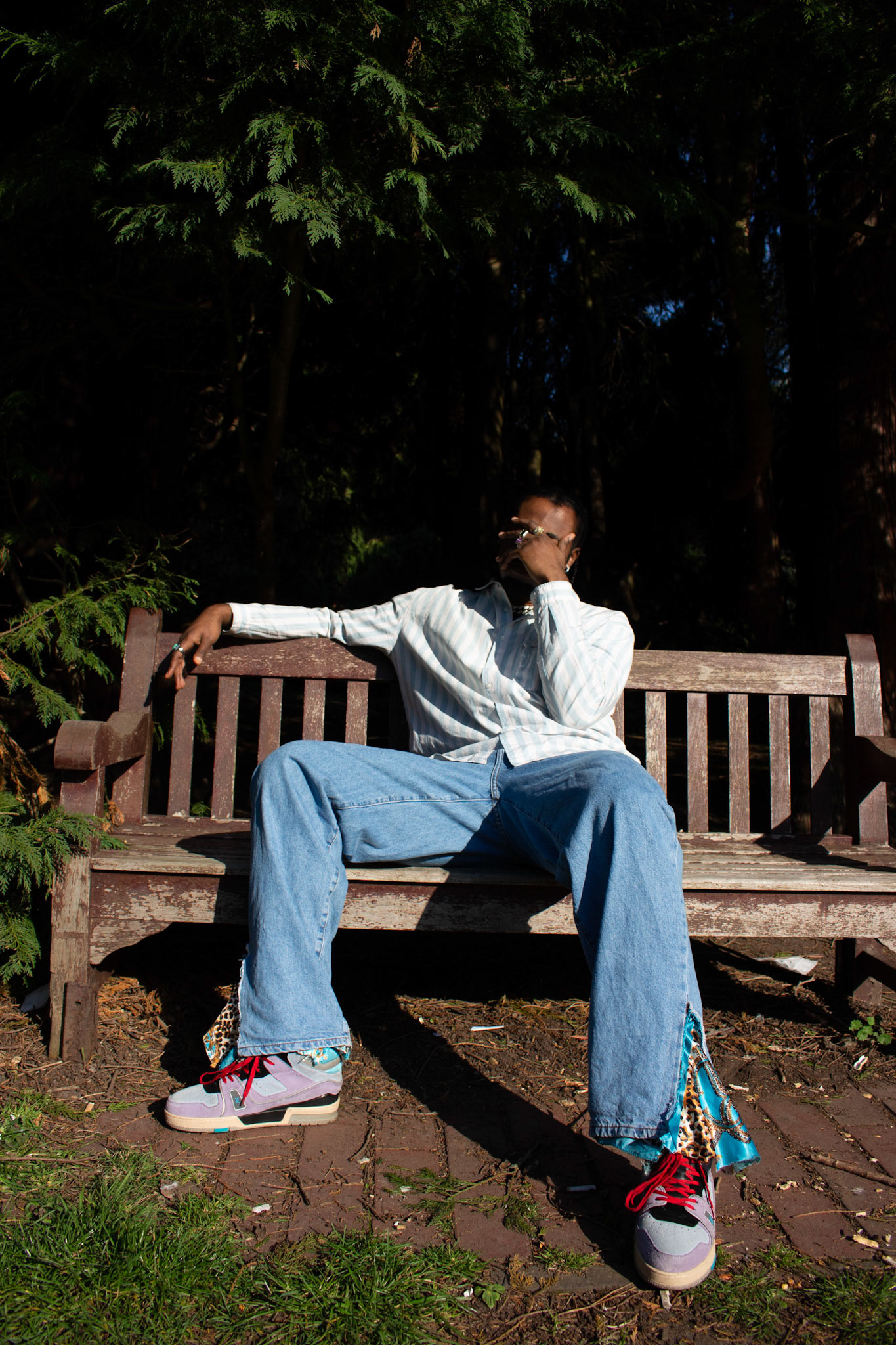 shot in Kelsey Park. This shoot was a creative documentation of Mr.Opoku's first creation. A 1 of 1 Denim Jean with ankle split silk. I also creatively directed the Jean making process.
